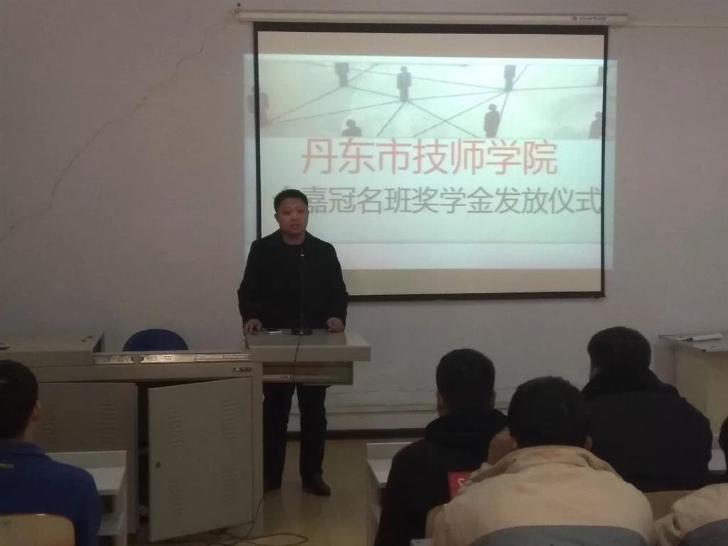 12月13日下午丹東市技師學(xué)院 “今嘉冠名班獎學(xué)金”發(fā)放儀式在多媒體會議室隆重舉行,學(xué)院“今嘉冠名班”7名品學(xué)兼優(yōu)的同學(xué)受到了表彰。
