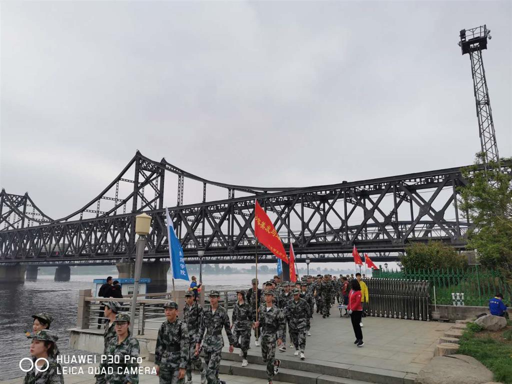 在校旗的引領(lǐng)下,隊(duì)伍沿著鴨綠江一路向前,井然有序又充滿活力。曾經(jīng)的硝煙已散去,但志愿軍的足跡卻印在歲月中,在步行至鴨綠江斷橋時(shí),隊(duì)伍駐足,在班主任老師的講述中,在橋上累累的彈痕前,同學(xué)們用心去追尋近七十年前志愿軍的足跡。兩個(gè)小時(shí),十公里的路程,同學(xué)們展現(xiàn)了良好的精神風(fēng)貌,整齊劃一的隊(duì)伍在路上引得人們頻頻側(cè)目,不少路人好奇的詢問(wèn):“你們是來(lái)自哪個(gè)學(xué)校的學(xué)生?這是開(kāi)展什么活動(dòng)?”并向同學(xué)們投來(lái)了贊許的目光。