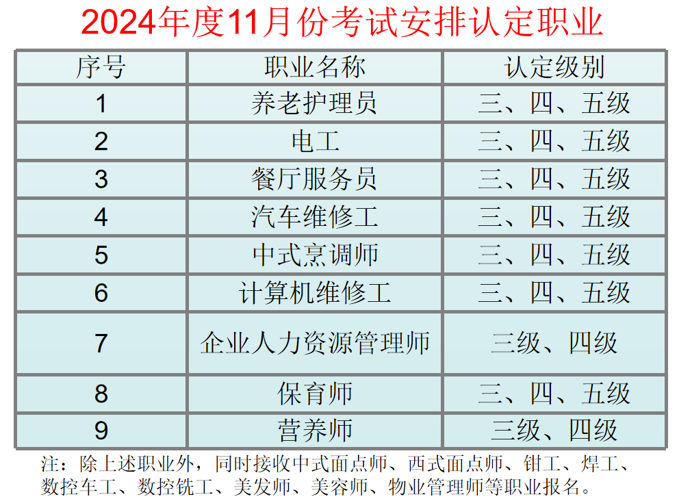 2024年度11月份職業(yè)技能等級(jí)認(rèn)定考試工作安排
