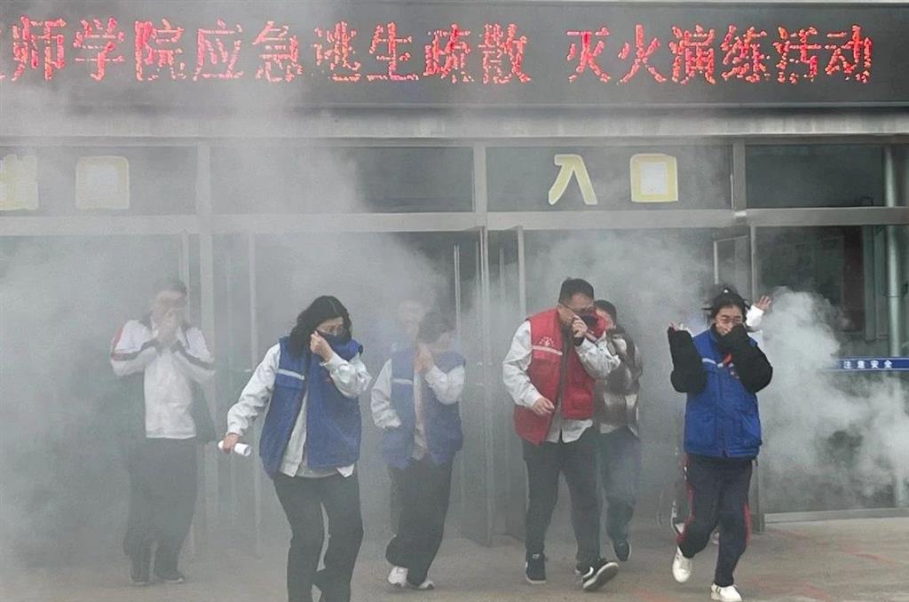 本次活動主要有兩項內(nèi)容:一、消防應(yīng)急疏散演練;二、消防滅火演練。11月7日下午3:00,隨著“演練開始”口令發(fā)出,教職員工、班主任和任課教師迅速組織沿著逃生指定路線有序、迅速撤離到學(xué)院運動場。此次疏散演練活動集合用時2分32秒。