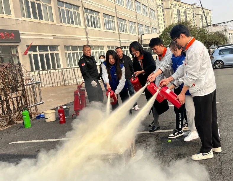 疏散演練結(jié)束后,振興區(qū)消防救援大隊的消防員給全體師生詳細講解了滅火器的使用方法,并現(xiàn)場進行了演示,為師生們上了一堂生動的消防安全教育課。同時邀請了教師和學(xué)生消防安全員參與體驗。