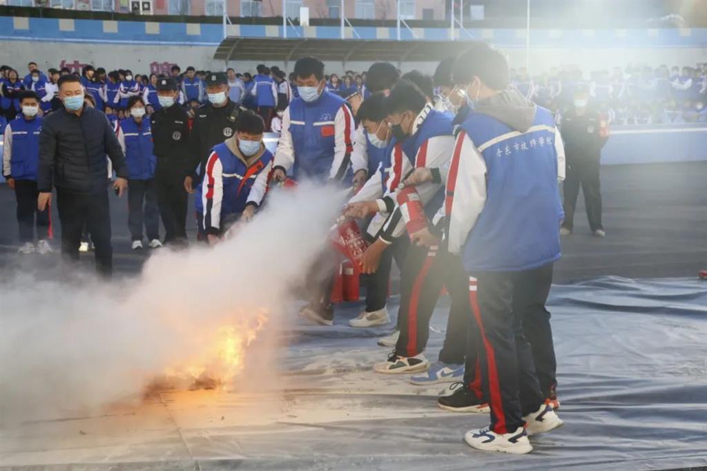 隨后,進行了消防滅火演練,振興區(qū)消防救援大隊的消防員詳細講解了滅火器的使用方法后,老師和學生分成了多組進行了實踐滅火演練,通過演練師生掌握了滅火器的使用和初期滅火知識。