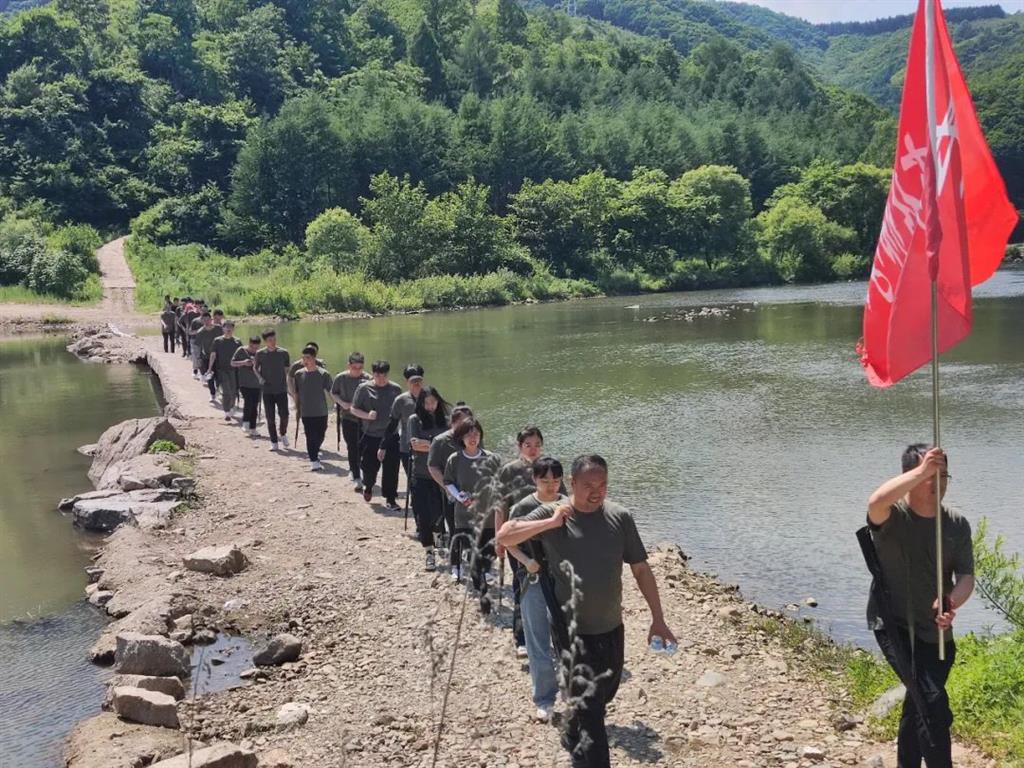隨后,開展了“志愿軍的一天”的軍事體驗。通過軍事拓展訓(xùn)練和團建活動,提升大家意志品質(zhì)和團隊協(xié)助能力。在體驗了“埋鍋造飯”后,舉行了出征儀式。在教官的帶領(lǐng)下,全體隊員模擬乘船渡江,進行了“急行軍搶占三所里”拉練,大家在規(guī)定時間內(nèi)圓滿完成任務(wù)。